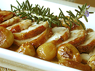Oven Roast Loin of Pork with Baby Onions in a Honey Mustard Glaze